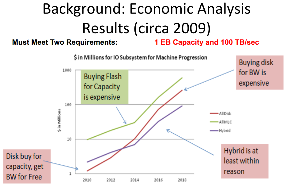 The economics are driving the development of “Burst Buffers” to fill the bandwidth gap being created by large numbers of large memory computational nodes. Basically, you need a very fast checkpoint/restart to keep that expensive leadership class system computing rather than waiting on I/O.