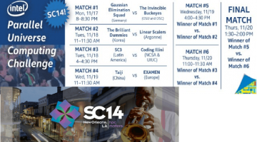 Intel announced today the competition schedule and the final selection of teams who will participate in the second annual Intel Parallel Universe Computing Challenge (PUCC) at SC14 in New Orleans, November 17-20. Each team will play for a charitable organization to whom Intel will donate $26,000 in recognition of the 26th anniversary of the Supercomputing conference. The 2014 … [Read more...]