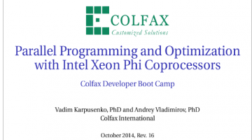 Colfax International is making the 280 page slide deck by Andrey Vladimirov and Vadim Karpusenko titled "Parallel Programming and Optimization with Intel Xeon Phi Coprocessors" available free to those who wish to register at this URL. This training is an intensive course for developers wishing to leverage the Intel MIC architecture. and increase their knowledge of multi-core … [Read more...]